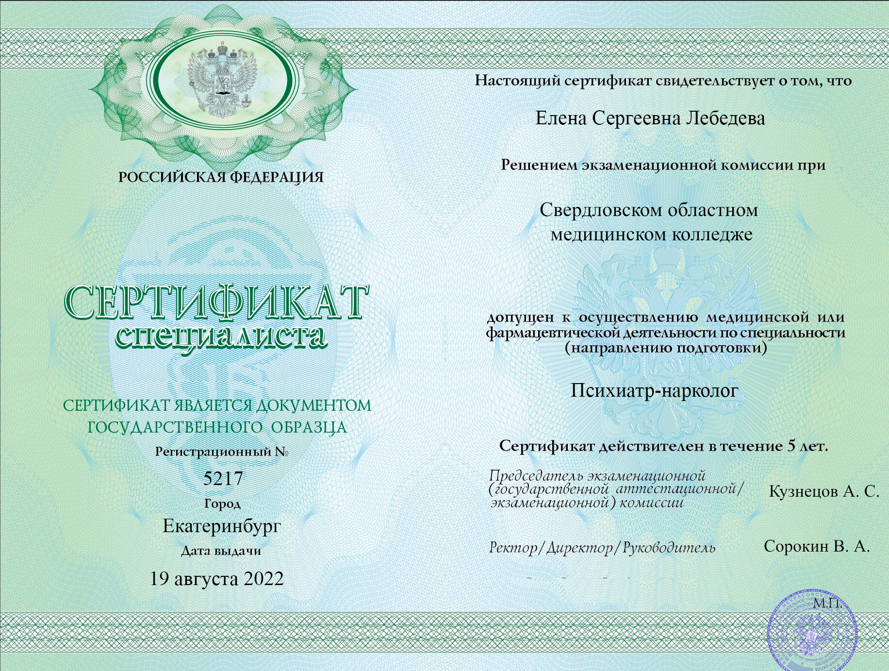 Елена Сергеевна Лебедева врач нарколог клиники доктора Стукаловой в Сызрани